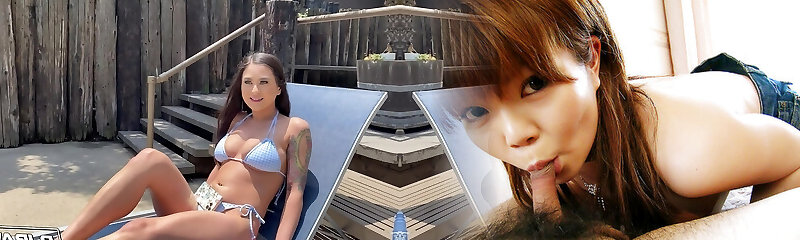 Nikki gets her pussy boinked in many postures on the poolside