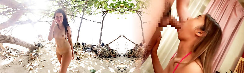 Sexy bootyful brunette bikini gal Cassie rides cock uncontrollable on the beach