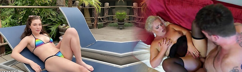 Bikini-dressed cougar with fantastic juggs liking a hardcore anal fuck