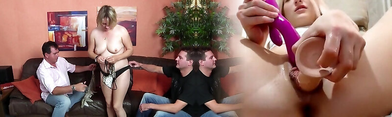 Busty blond milf squirts on his black spunk-pump and on the sofa