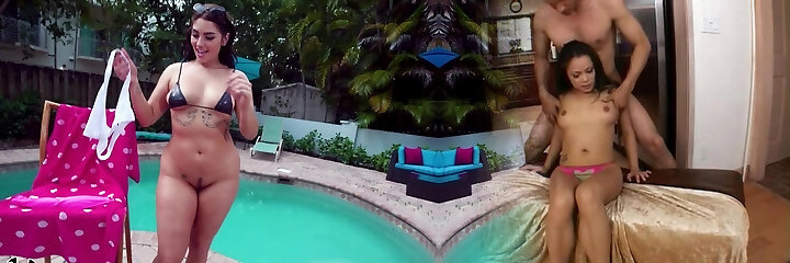 Dude fucks his blonde stepsister with smallish tits in a swimsuit