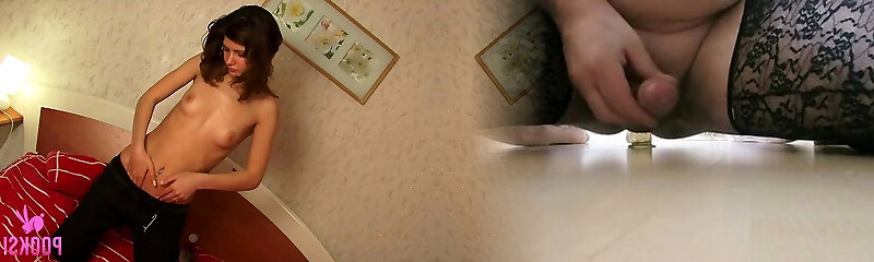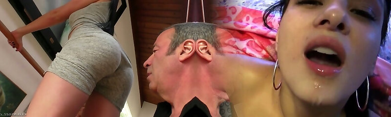 Slender brunette girlie with yummy titties lures old man to get twat teased