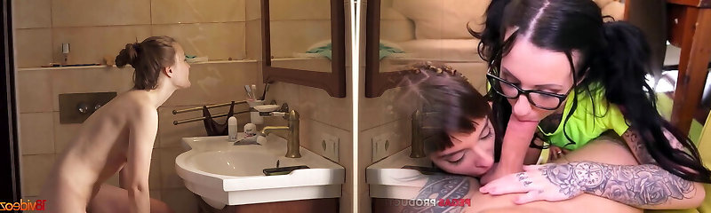 Sex-positive dark haired MILF shows a nubile girl how to please a man