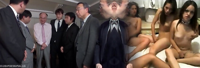 Busty Asian fuckslut gets gang banged by horny businessmen