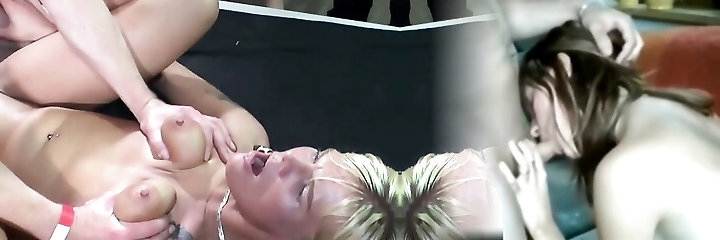 Naughty Blonde Gets Gangbanged By Several Milky Rods
