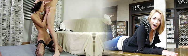 Pretty dark haired bitch Sarah Shevon deep throats big cock