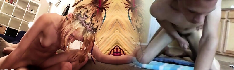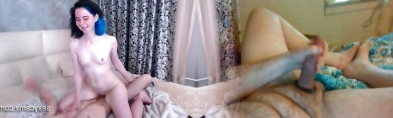 Slender, blue-haired teenager observe her show off her gorgeous body and ideal firm ass while she gets fucked from behind.
