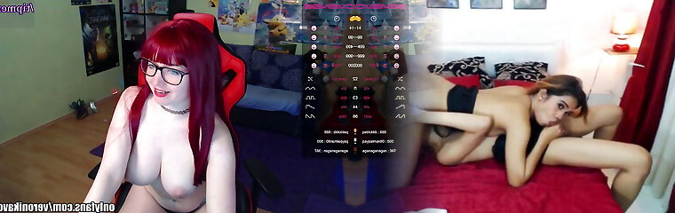 Horny gamer chick with mega big boobs in twitch stream