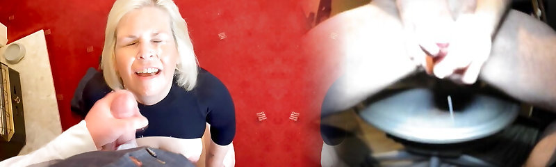 Close-up Fuckpole Massage until it cum by a hot busty Milf