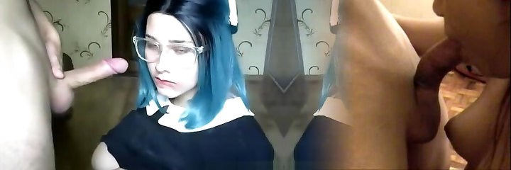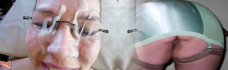 Sloppy and messy cocksucking from the hot lady in glasses