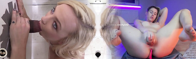 ANAL ONLY Blonde Smallish Whore Sucking Off Cocks in Glory Hole ASS Plumb!