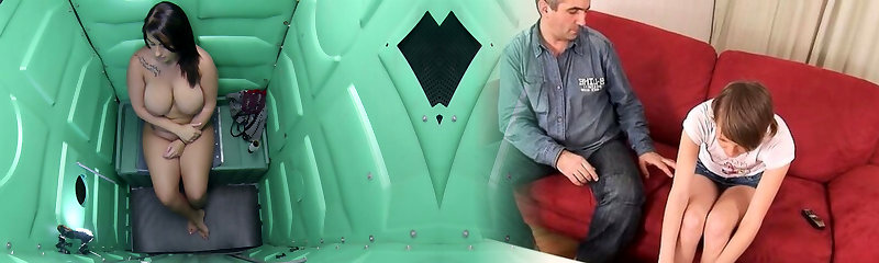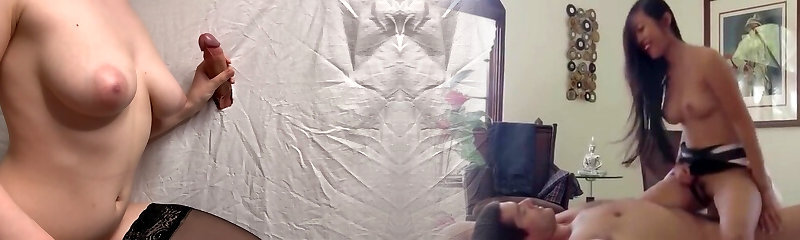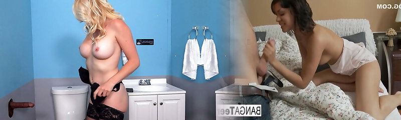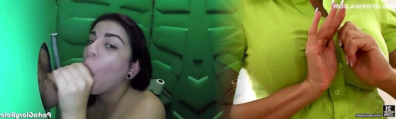 Slutty girl with small tits sucking big dicks thru gloryhole