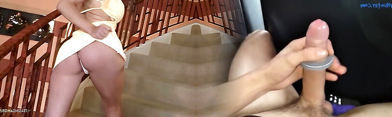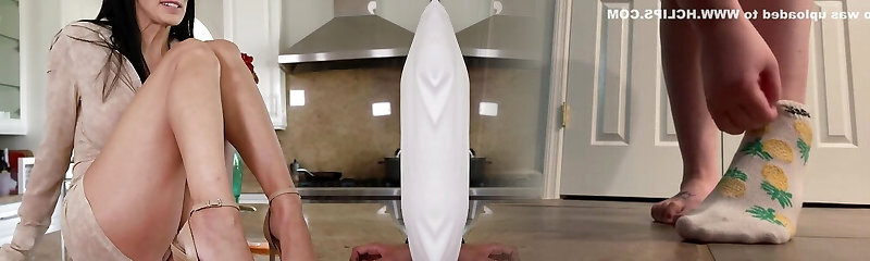 my stepmom saw me watching her when she cleans bare in high high-heeled shoes