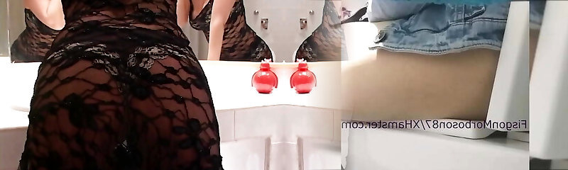 Beautifull MILF In Black Stockings And High Heels Used Deserved White Molten Bathroom