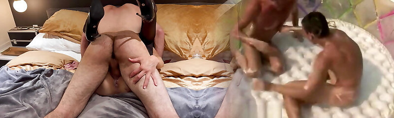 Curvaceous bombshell shared by two dudes and their hard dicks