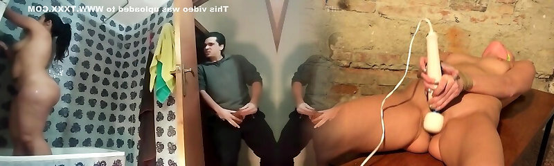 Fantastic nyashka after the shower wipes in the douche and sates her sister's husband with boobs