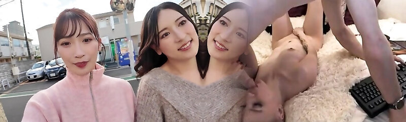 Lovely buxom Jap Akari Asayiri helps another kawaii Asian female to masturbate