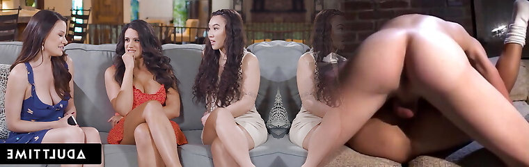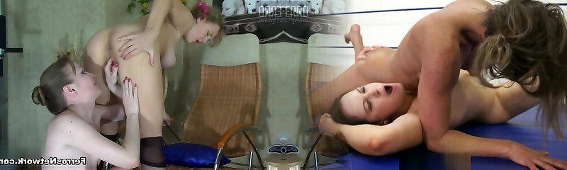 Four sexy sluts lick and chat in a lesbo group