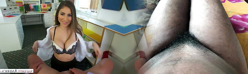 Insane office slut Lyra Lockhart is anxious to be fucked missionary on table