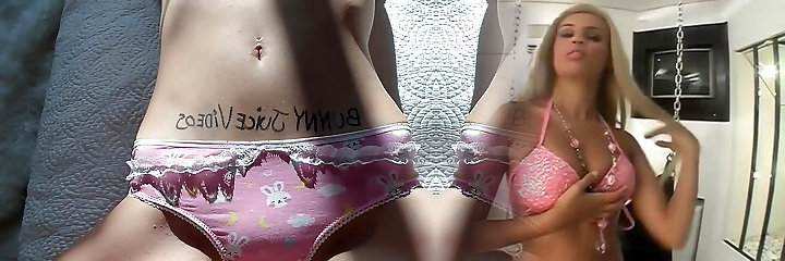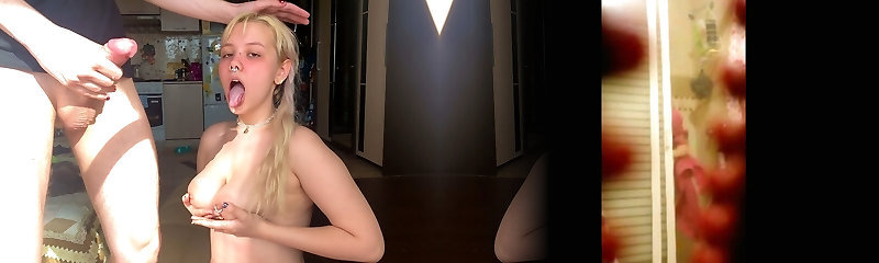 Platinum-blonde with a young face likes every drop of cum on her body