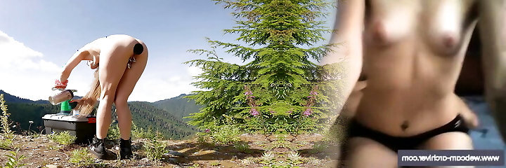 nippleringlover masturbating outdoors - real orgasm - pierced pussy lips - extreme nipple piercings