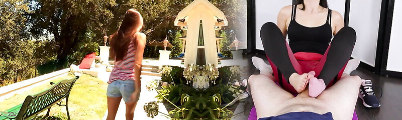 Alluring hottie with a sexy ass bj's a mean chisel outdoors