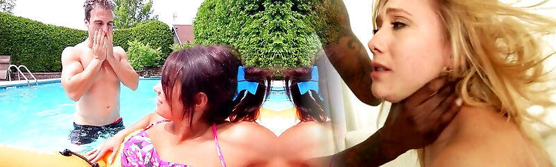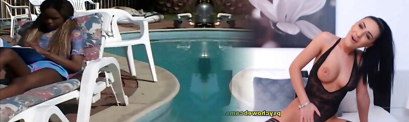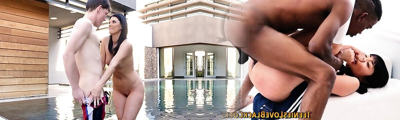 Absolutely gorgeous dark-hued teen takes a white manmeat by the pool