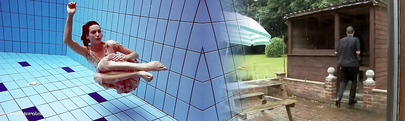 Petite gal Anina Silk publicly pounds with her swimming coach right in the pool.