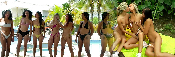 Chicks in bikinis are partying in the swimming pool - AviDolz