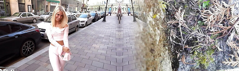Magnificent blonde bimbo with big fake tits and chubby ass