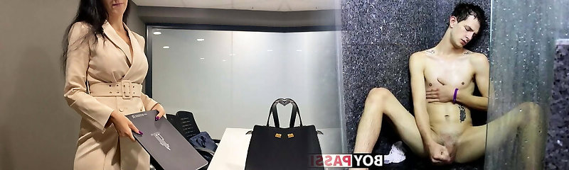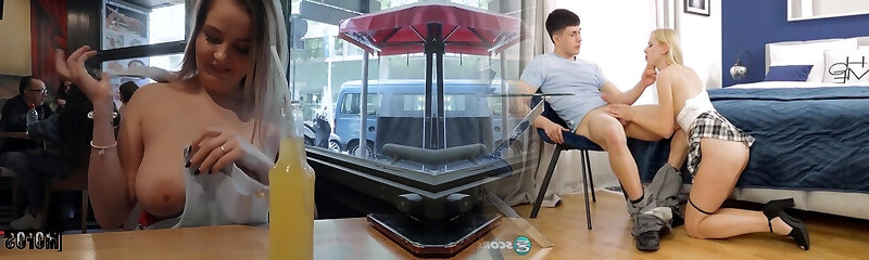 Nina Kayy fucks with a teen waiter in a public restroom