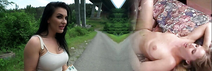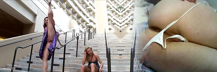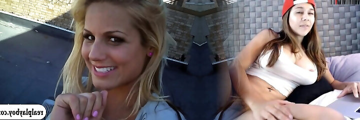 Emily and Danielle angelic busty lesbians public flashing