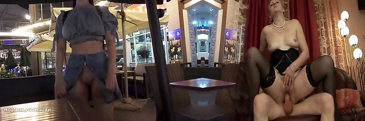 Public bus stop hardcore fucky-fucky while an old guy watches