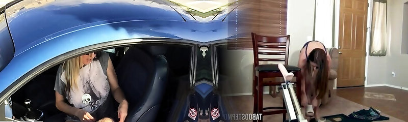 Busty slut gets her cock-squeezing asshole pounded in the car