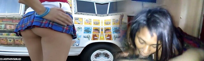 Naughty girl in short skirt Allysa is fond of that big and monstrous dong