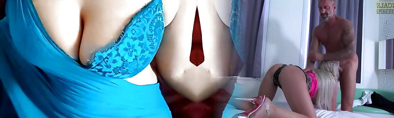 Hypnotic brunette in high heels stripteasing then pounded hard-core