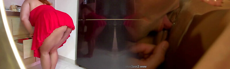 busty housewife in her kitchen finds a ample fuck stick and brings herself right on the floor to orgasm with splatter.