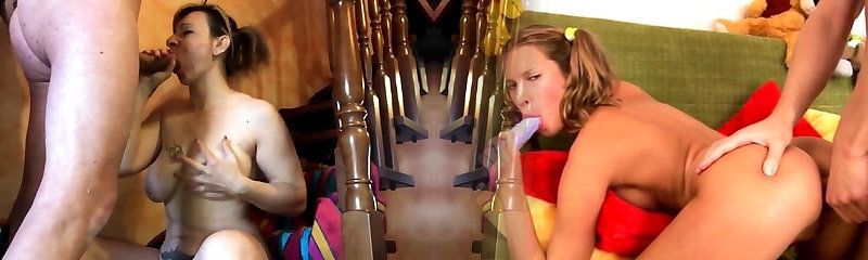 Chubby housewife Lilly Bell shares a cock with uber-cute Jenna Love