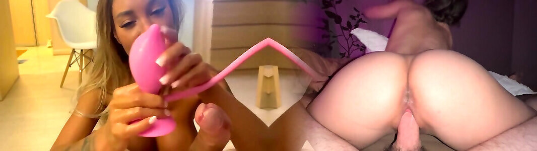 Playful light-haired chick with perky mammories enjoys to eat her pants while her shagger is polishing her ass with his massive dong