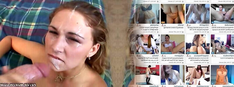 Sexy brunette gags during dirty bj then facial