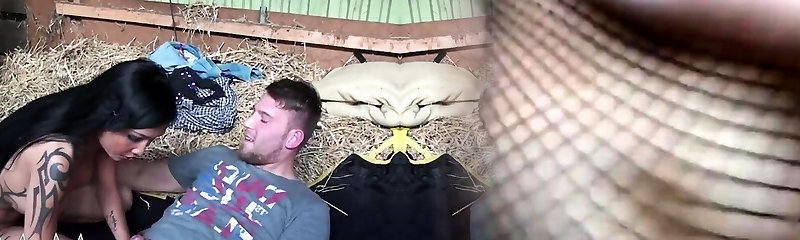 Fake titted Japanese babe fucking in the barn
