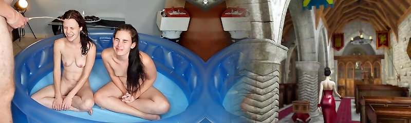 Stepbrother caught stepsister taking a bath and fucks her tight labia