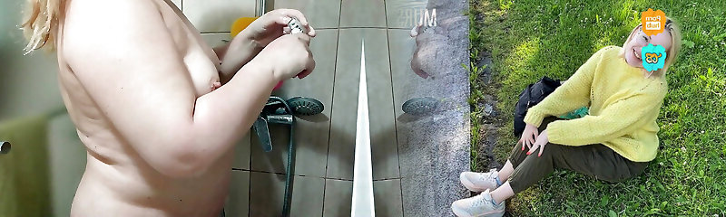 Teen mom toying with tits in shower, breast milk babe