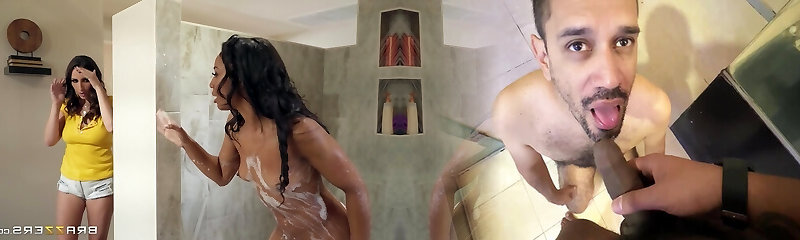 Blowjob under shower big udders cougar