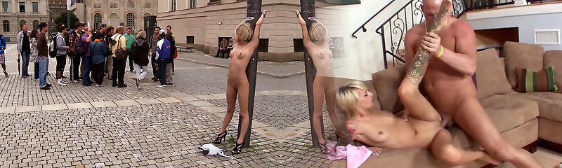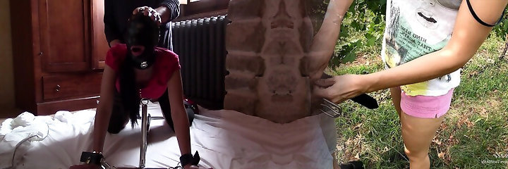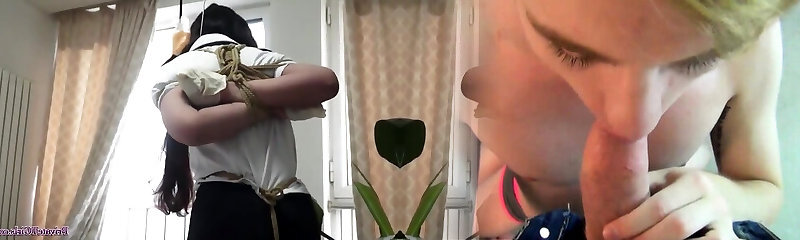 Submissive tied up blonde is humiliated by boy and authoritative bitch