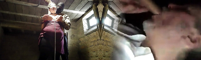 Mad scientist pours hot paraffin wax on bound thick mature blonde's clitoris in dungeon