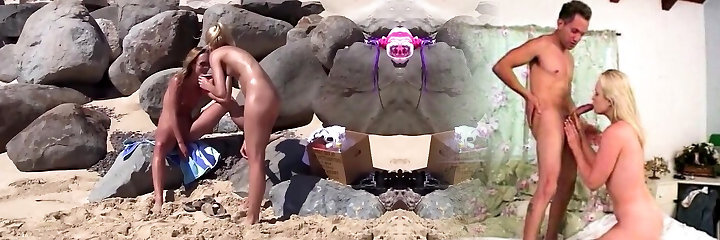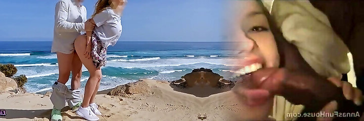 Outdoor dicking on the beach with ash-blonde Luna Fae & her Bf