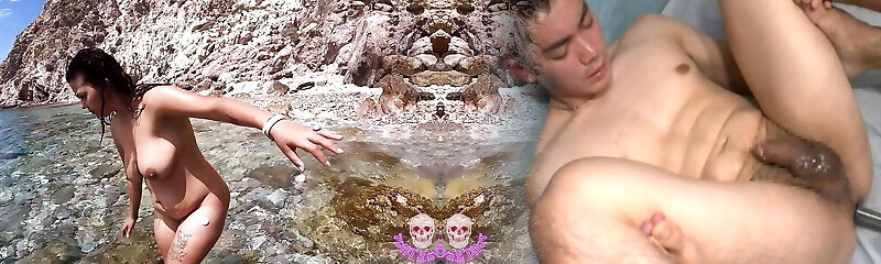 Playing with my poon on a wild beach