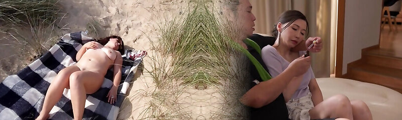 daughter-in-law touches stepdad's cock on a public beach