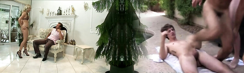 Two dudes stuff pefroming double intrusion on a blonde whore